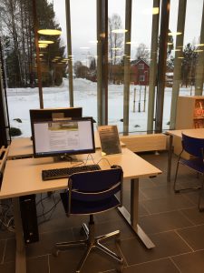 Lehtilukusalissa asiakkaiden käytössä on yksi tietokone. Lehtilukusalin tietokoneelle voi varata vuoron maksimissaan tunniksi kerrallaan. Tältä koneelta on myös tulostusmahdollisuus. Tulosteet ohjautuvat henkilökunnan kopiokoneeseen. Saat tulostamasi paperit palvelutiskiltä.