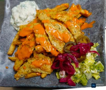 Ranskalaisten perunoiden vastapaistetussa tulikuumassa pinnassa hehkuu paikallinen herkku, paahtosuola.
