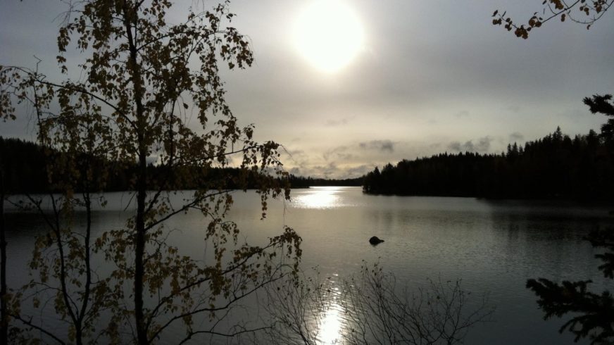 Kävelemme koirien kanssa saaren itärantaa. Puulan vesi on kirkasta ja kylmää. Hieno hiekka kuultaa kitinvärisenä sen alta.