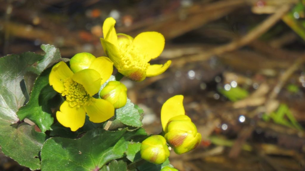Veden partaalla rentukka patistelee terälehtiään avautumaan. Keltainen on kevään väri. Kosken laitamilla kedolla kasvaa pellollinen leskenlehtiä ja hentoisia käenrieskoja. Leskenlehti on vaatimaton kukka, mutta sen merkitys kevään julistajana on korvaamaton.