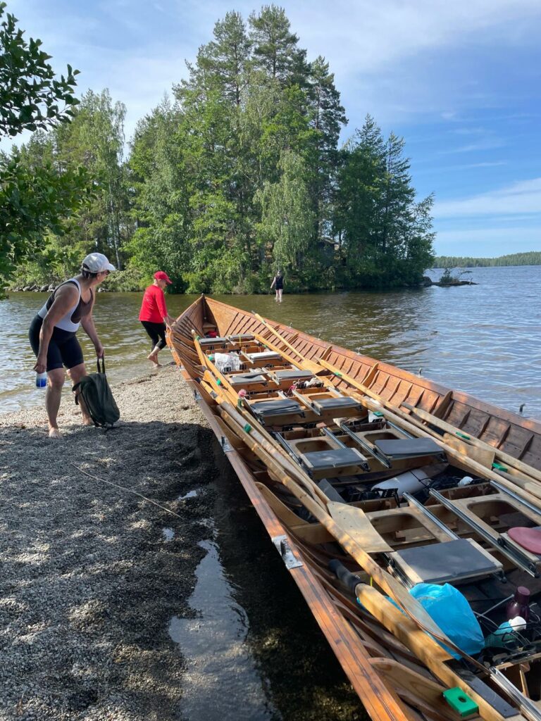 Seitsemän airoparia kiskoi jylhää venettä kohti lähtösatamaa. Vielä muutama sata metriä Simpiän selkää ja sitten olisimme saaren suojassa. Anni lakkaisi keikkumasta ja soutaminen olisi helpompaa.