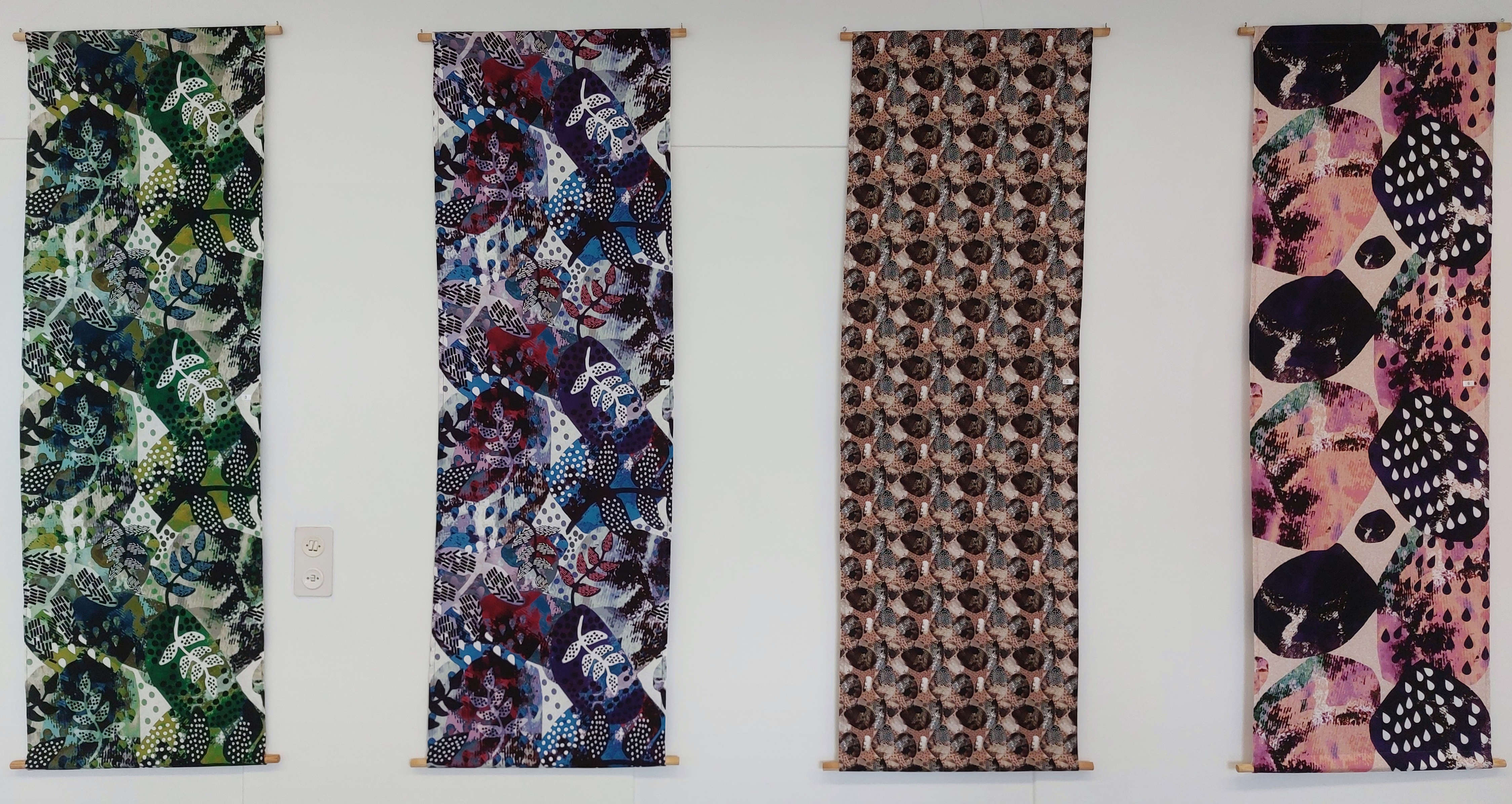 Olen kirjoittanut opinnäytetyöprosessista aiemmin jo kaksi blogikirjoitusta kunnan blogiin. Ensimmäinen kirjoitukseni on julkaistu toukokuussa 2022. Esittelin tuolloin työni lähtökohtia. Lokakuussa 2022 kirjoitin toisen blogikirjoituksen. Tuona ajankohtana minulla oli näyttely Kangasniemen Kuvantekijät ry:n ArtTuvassa, jossa oli esillä myös opinnäytetyöni aineistoa eli digitaalista grafiikkaa painettuna tekstiilille ja paperille. Näyttelyni pääteokset olivat kankaat.