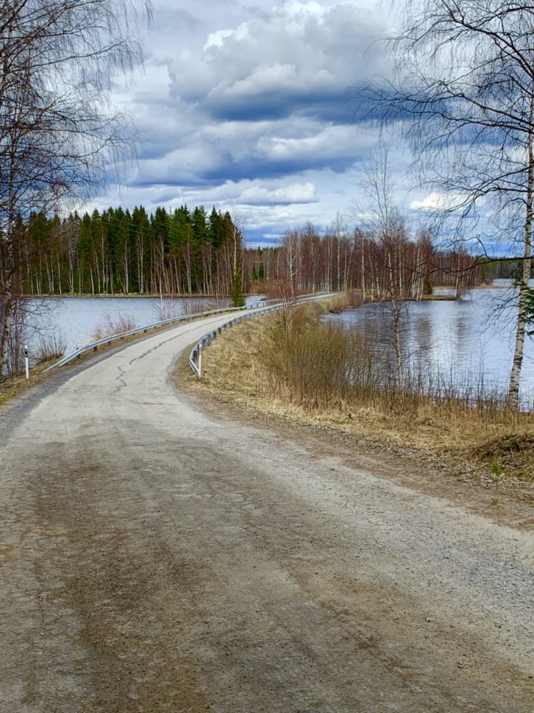 Vasemmalla kohoaa korkea kuusiaita. Ne ovat täällä Savossa tavallisia. Synnyinseudullani Pohjois-Karjalassa kuusiaitoja näkee harvemmin.