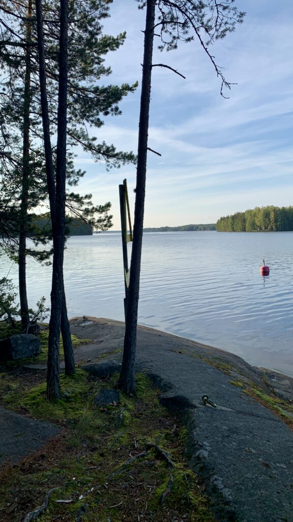 Istuimme laavulla, hörppäsimme juotavaa ja söimme eväsleipiä. Oli hiljaista. Vesillä ei näkynyt ketään, mökit vastarannalla vaikuttivat autioilta. Kesäinen, tyyni ja lämmin järvi oli aivan vailla ihailijoita.