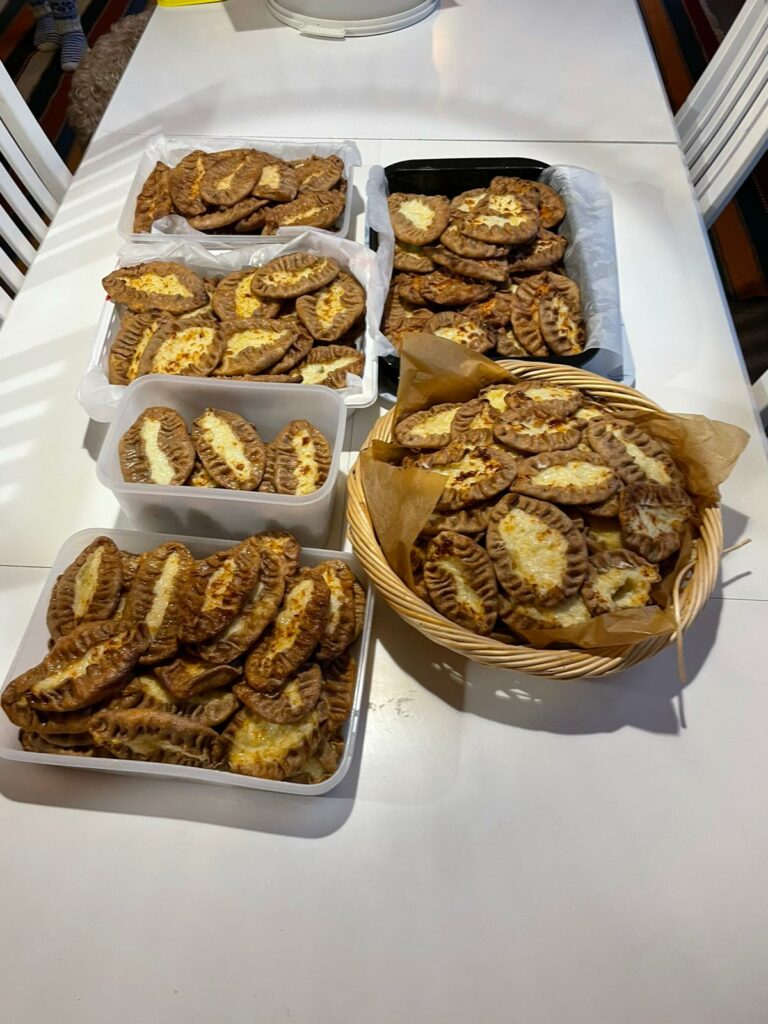 Kaikki 350 piirakkaa jaetaan porukan kesken ja leipurit häipyvät harmauteen nyssäkät kainaloissaan. Perästä kuului, että kotimiehetkin tykkäsivät. Olipa kiva päivä.