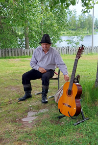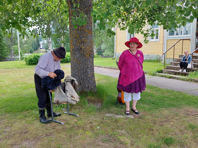 Ulkona meidät yllätti itse Havukka-ahon ajattelija, Konsta Pylkkänen. Voi minkälaisia ajatuksia hänellä olikaan. Elävästi ja osallistavasti Konstan ajatukset meille esitti Hannu Väyrynen. Huumoria ei esityksestä puuttunut, niin kuin ei Veikko Huovisen kirjoistakaan, sieltähän tämä Konsta Pylkkänenkin on peräisin. Veikko Huovinen on sotkamolainen kirjailija ja hänen näköistyöhuoneensa sijaitsee Niemelän talossa. Kirjailijan tuotannosta ja elämästä meille oli kertomassa Sotkamo-opas Aila Flöjt.