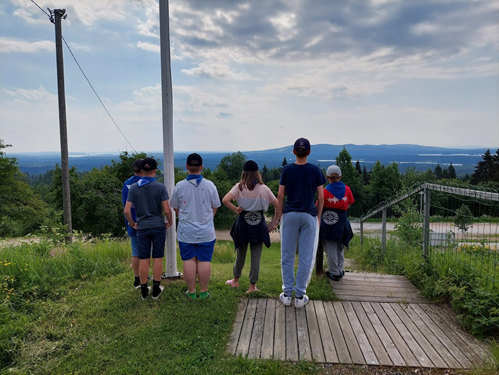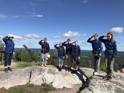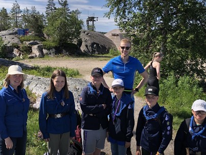 Kipusimme tällä kertaa kuitenkin autolla Vuokatin vaaran päälle. Vuokatin korkeilla kallioilla vietimme juhlallisen hetken partiojuhla-asuissamme kun Puula-partion uusin jäsen, Pauli, vannoi sudenpentulupauksen. Lupaus teki hänestä ihka oikean partiolaisen. Paulille tämä leiri oli ensimmäinen partioleiri ikinä. Hetki sai yllätysvieraan kun aina niin iloinen tubettaja Roni Back tupsahti katselemaan maisemia samalle kalliolle, jossa me vietimme juhlahetkeä. Vaihdoimme muutaman sanan partiosta Ronin kanssa, onhan hän ollut mukana Koitos-19 haasteessa, ja esiintyjänä edellisellä isommalla partioleirillä, Ryskeellä 2019.