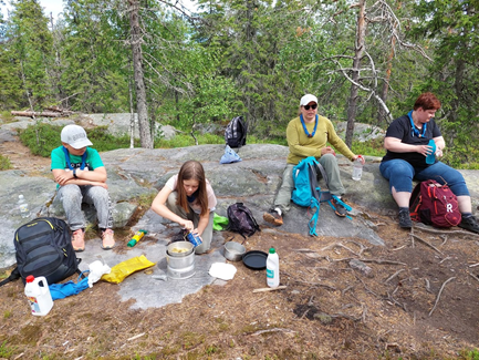 Matkan varrella pysähdyimme laittamaan ruokaa trangioilla ja hernekeitto maistui hyvin kaikille.
