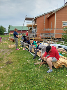 Päivämme jatkui huovishengessä. Teimme rosvopaistia Pyynpuottajien majalla, kokkina toimi Heinämäen kyläyhdistyksen Kim Grönberg. Lammasta emme kuitenkaan varastaneet, kuten Lampaansyöjät-kirjassa tehtiin. Me toimme omat lihat kotoa Kangasniemeltä, Roinilasta.
