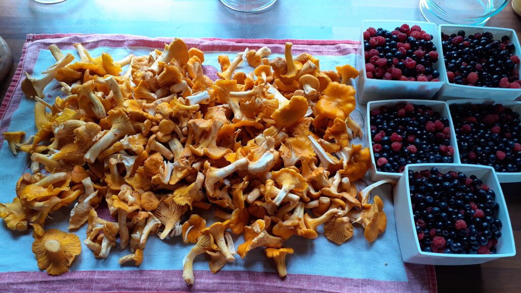 Tämä vuosi on ollut myös kanttarellien osalta aivan ihmeellinen. Näitä keltaisia herkkuja on noussut mitä oudoimpiin paikkoihin. Vielä viikko sitten keräsin viimeisiä kanttarelleja Otto Mannisen latupohjan varrelta. Niitä nautimme sunnuntain aterialla Koivuniemen tilan karitsanpaahtopaistin lisukkeena. Lähiruokaa parhaimmillaan. Herkkutatit, kosteikkovahverot ja kanttarellit ovat hyvin edustettuina pakkasessa. Niistä riittää syötävää pitkälle kevääseen.