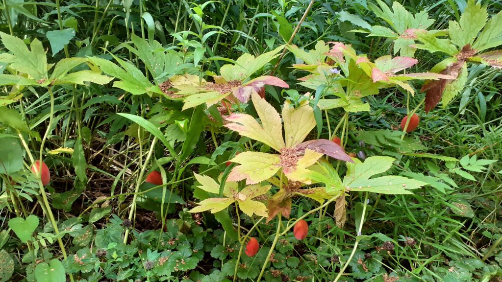 Pitkä ja lämmin syksy aiheutti iloisia yllätyksiä puutarhassa. Puutarhavadelman satokausi oli yllättävän pitkä ja karhunvadelman marjat ehtivät kypsyä ensimmäistä kertaa kunnolla. Viimeisiä herkullisia mustia marjoja keräsin vielä lokakuun alkupäivinä. Karhunvadelman marjat kypsyvät pikkuhiljaa useamman viikon ajan ja aina aiempina syksyinä kylmyys on verottanut niiden satoa. Läheskään kaikki marjat eivät ehdi kypsyä. Tuoreita tyrnejä ja karhunvadelmia sekä luumuja sain syödä aamupalalla tänä vuonna pitkälle syksyyn.