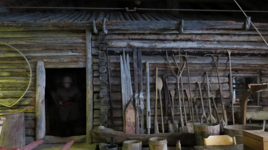 Työkaluja ja vaatteita katsellessa valkeni se, mihin kaikki aika käytettiin: vaatteiden ja tarvekalujen valmistukseen. Puisessa satulassa ei ollut naulan naulaa. Pesuvadit olivat laakeita puisia paljuja. Kauhat, lusikat ja hierimet oli tehty puusta. Haravoissa oli puiset piikit.