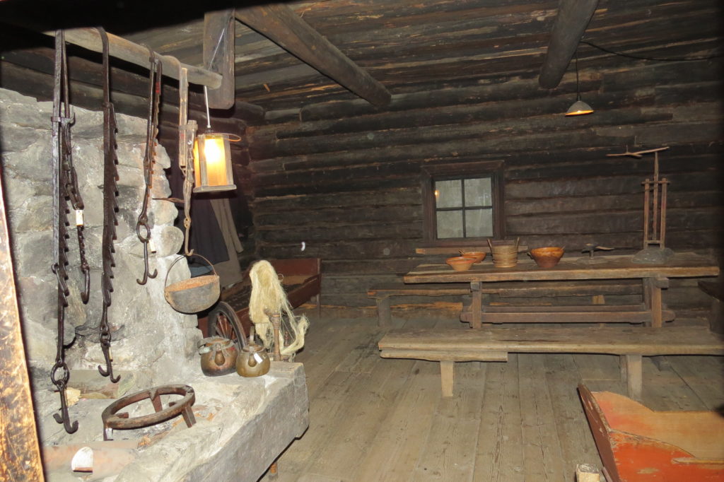 Pöydällä oli lamppu: pitkäjalkainen päreen pidike. Yritimme kuvitella, mitä perhe, äiti ja isä sekä kuusi lasta, teki talvisin, kun valoa oli vain kuusi tuntia. Ja loppuaika vietettiin pilkkopimeässä päreen valossa. Tuli rätisi uunissa ja savu tuprusi tupaan. Se nousi kattoon ja jätti alas tilaa hengittää.