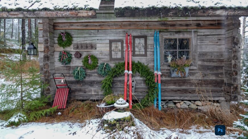 Katselemme verkkaan yli satavuotiaita lehtiä. Annamme ajatuksen edesmenneille sukupolville ja mietimme, miten erilaisessa maailmassa he elivätkään. Vartaassa katossa on kymmenkunta reikäleipää. Tuohikontti on täynnä lasten kirjeitä joulupukille.