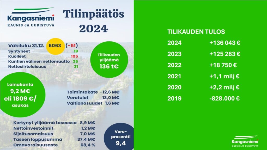 Kunnan tilikausi on kalenterivuosi. Kunnanhallituksen on laadittava tilinpäätös tilikautta seuraavan vuoden maaliskuun loppuun mennessä. Annettava tilinpäätös tilintarkastajien tarkastettavaksi sekä tilintarkastuksen jälkeen saatettava se valtuuston käsiteltäväksi. Valtuuston on käsiteltävä tilinpäätös kesäkuun loppuun mennessä. Kunnan tilinpäätöksen allekirjoittavat kunnanhallituksen jäsenet ja kunnanjohtaja.