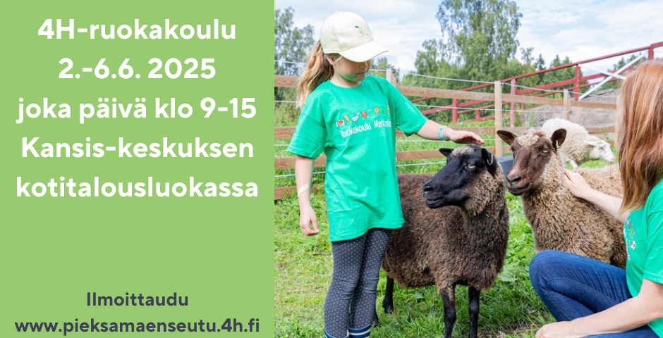 Ilmoittaudu 15.5.2025 mennessä nettisivujen kautta https://pieksamaenseutu.4h.fi/ruokakoulu/