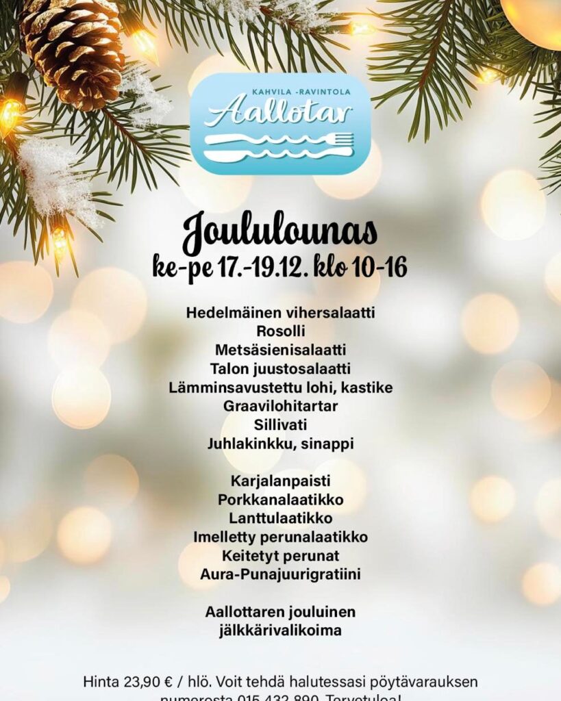 Aallottaren joululounas on katettuna ke-pe 17.-19.12.2026 klo 10-16.