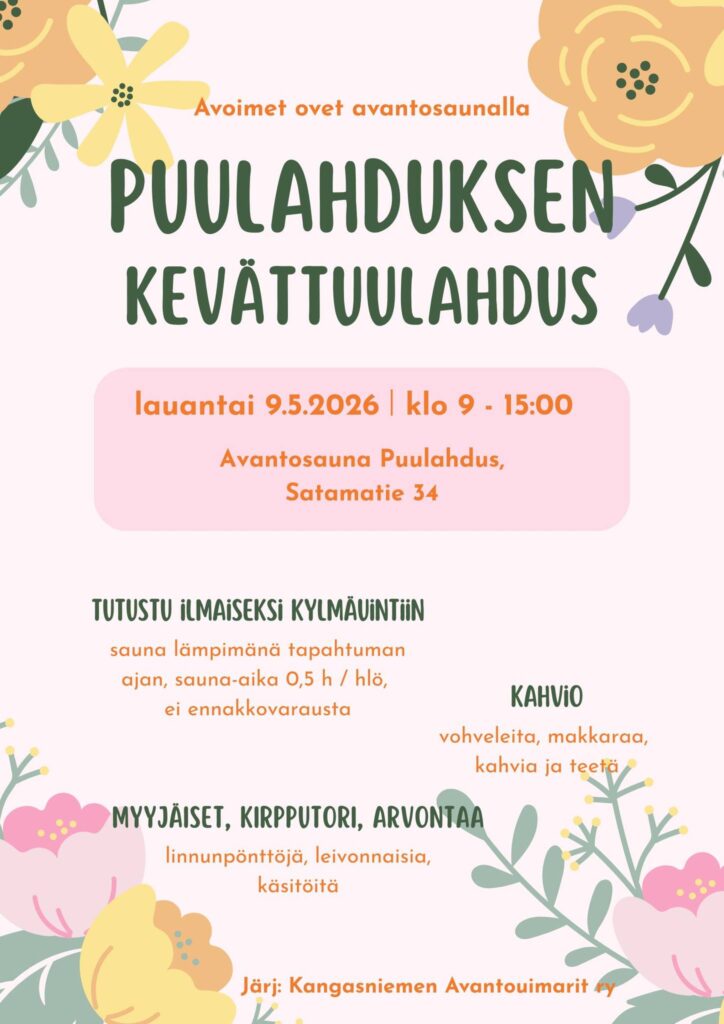 Lauantaina 9.5. avantosauna Puulahduksella vietetään avointen ovien tapahtumaa klo 9 – 15!