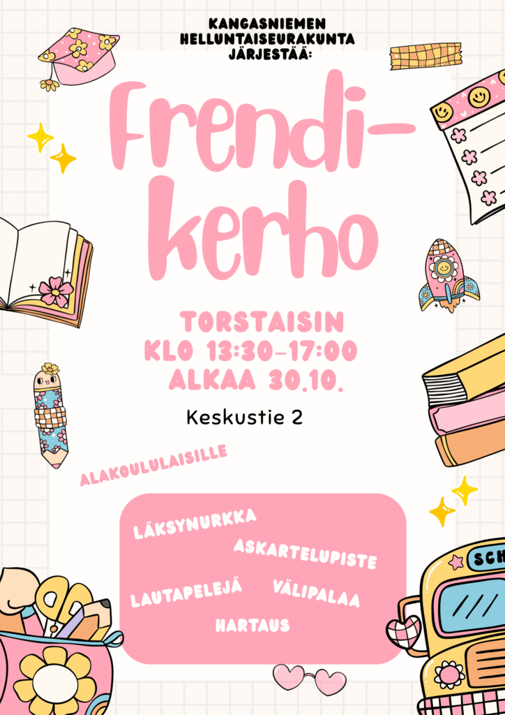 Kangasniemen helluntaiseurakunnan Frendikerho alakoululaisille torstaisin.