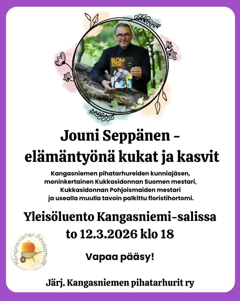 Kangasniemen pihatarhureiden kunniajäsen Jouni Seppänen luennoi aiheesta ”Elämäntyönä kukat ja kasvit”.