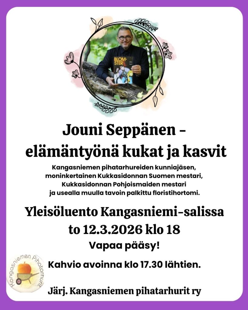 Kangasniemen pihatarhureiden kunniajäsen Jouni Seppänen luennoi aiheesta ”Elämäntyönä kukat ja kasvit”.