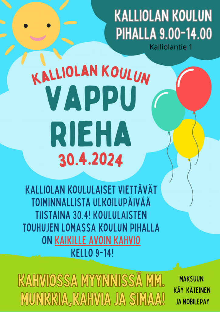 Kalliolan koululaiset viettävät toiminnallista ulkoilupäivää vappuaattona 30.4.2024.