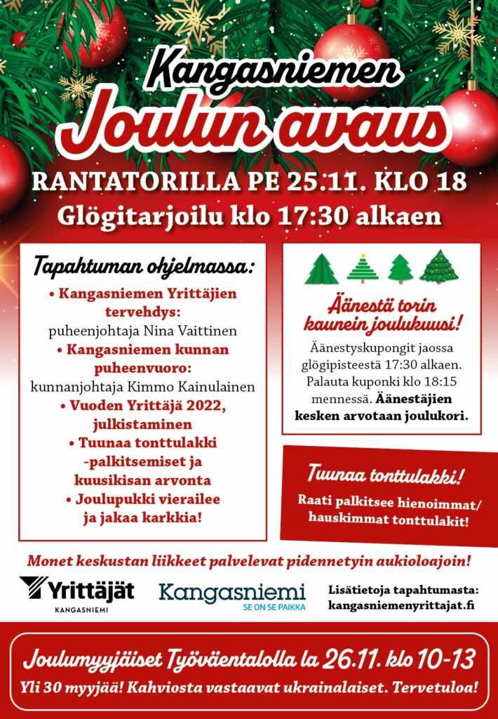 Kangasniemen Joulun avaus järjestetään perjantaina 25.11. klo 18 Rantatorilla.