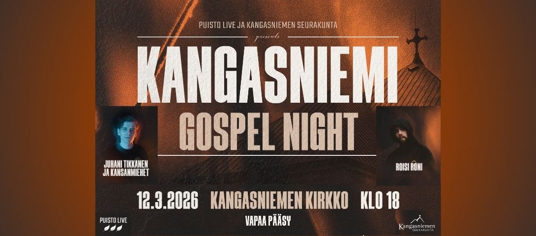 Kangasniemen Gospel Nightissa esiintyvät Juhani Tikkanen Kansanmiehet -yhtyeen kanssa ja Roisi Roni. Tikkanen on ollut Kangasniemellä esiintymässä muutama vuosi sitten ja tällä kertaa artisti ottaa mukaansa Kansanmiehet -yhtyeen. Roisi Roni on tuttu kasvo Immanuel yhtyeestä ja myös artistin soolokeikoilla ollaan Sanan äärellä räppigenren ympäröimänä.