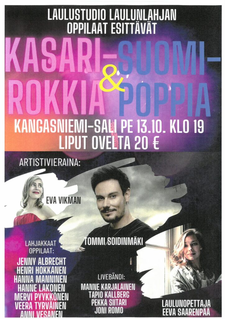 Eeva Saarenpää ja Tommi Soidinmäki ja Laulustudio Laululahjan oppilaat.