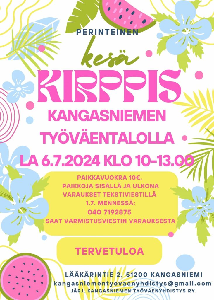 Super suosittu kesäkirppari Kangasniemen työväentalolla la 6.7.2024 klo 10.00-13.00.