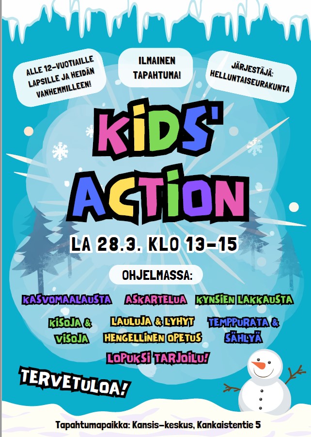 Kids action järjestetään Kansis-keskuksessa lauantaina 28.3. klo 13-15.