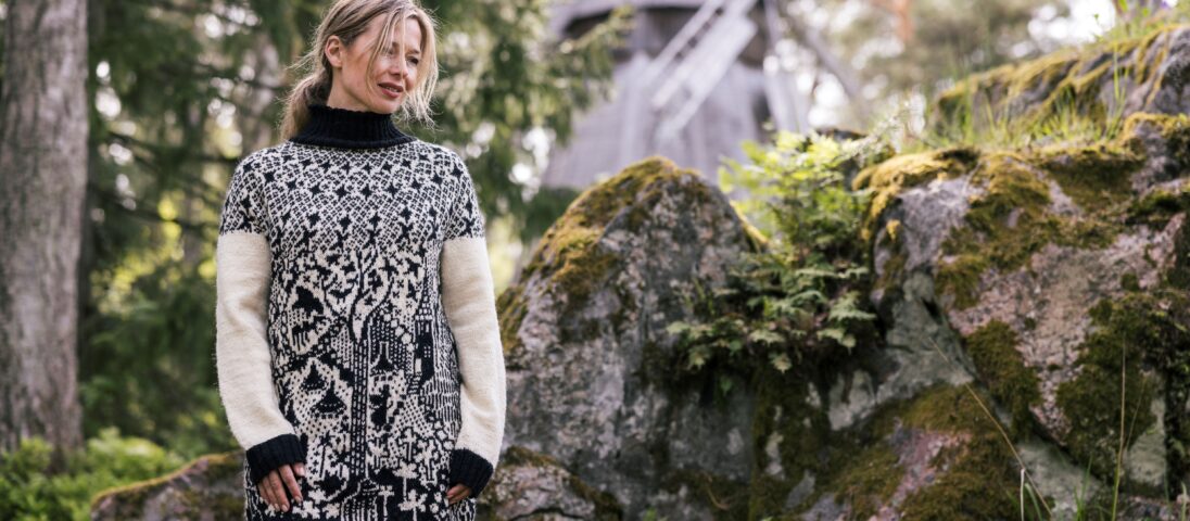 Keskiviikkona 19.11. kello 18 alkaen vieraanamme on tekstiilitaiteilija, taiteen tohtori ja neulesuunnittelija Marjukka Vuorisalo. Vuorisalo on monelle tuttu Puulan seutuopiston käsitöiden ja taiteen opettajana. Harvempi tietää, että hän on suunnitellut neulemalleja useisiin käsityökirjoihin. Viimeisimpänä on ilmestynyt Muumilaakson neuleet -teos (Moreeni/Otava), jossa on Vuorisalon tapahtumakuvassa näkyvä muumineuleen malli. Illan aikana saamme kuulla neulesuunnittelusta yleisemmällä tasolla ja tarkemmin vielä juuri kuvassa näkyvän neuleen suunnittelusta. Lisäksi Marjukka haluaa arpoa iltaan osallistuneiden kesken kuvassa olevan mallin lasten (110 cm) puseron.