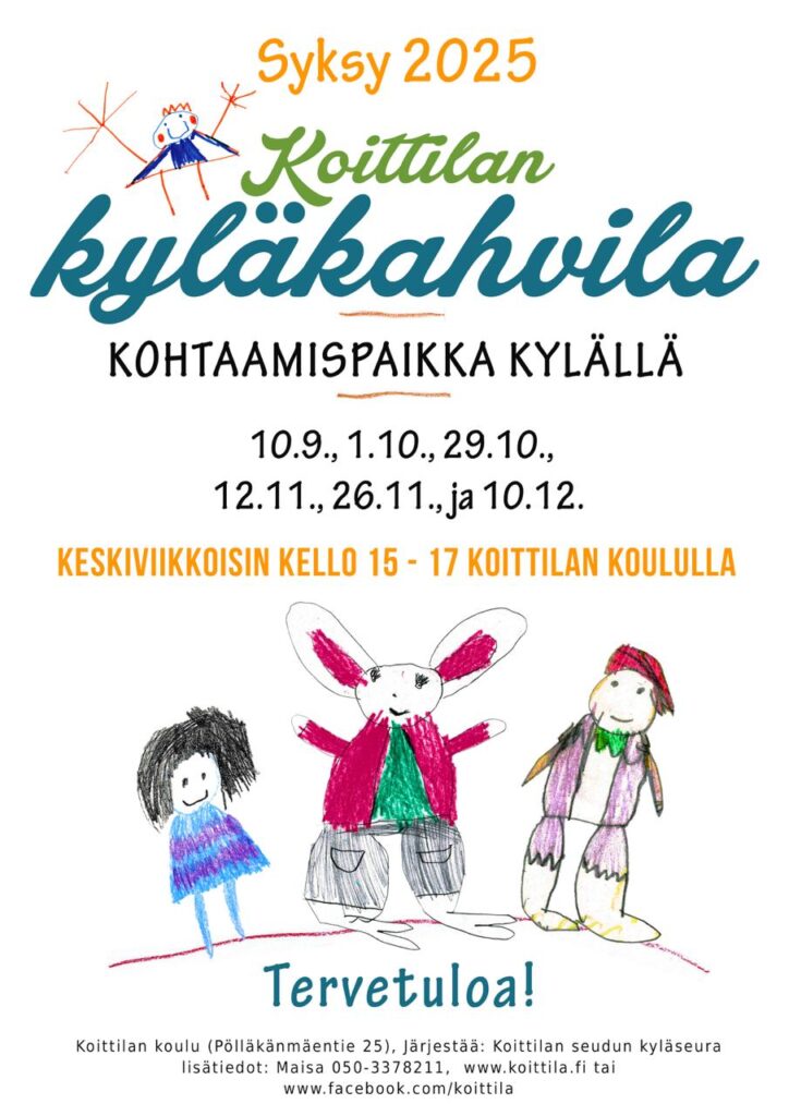 Kyläkahvila on kohtaamispaikka Koittilan koululla kaiken ikäisille kyläläisille vauvasta vaariin. Kyläkahvilaa on tänä syksynä kuusi kertaa, aluksi pidemmillä väleillä ja loppusyksystä kahden viikon välein.