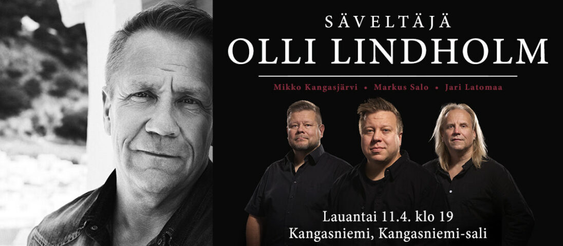 Viime keväänä toteutettu Säveltäjä Olli Lindholm -kiertue osoitti, miten vahvasti Ollin sävellykset yhä puhuttelevat. Konsertit keräsivät paljon yleisöä ja runsaasti koskettavaa palautetta, josta välittyi selkeä viesti: näitä kappaleita ja kertomuksia halutaan kuulla lisää. Konsertit saavat jatkoa keväällä 2026 ja meillä on ilo saada yksi kiertueen konserteista tänne Kangasniemelle.