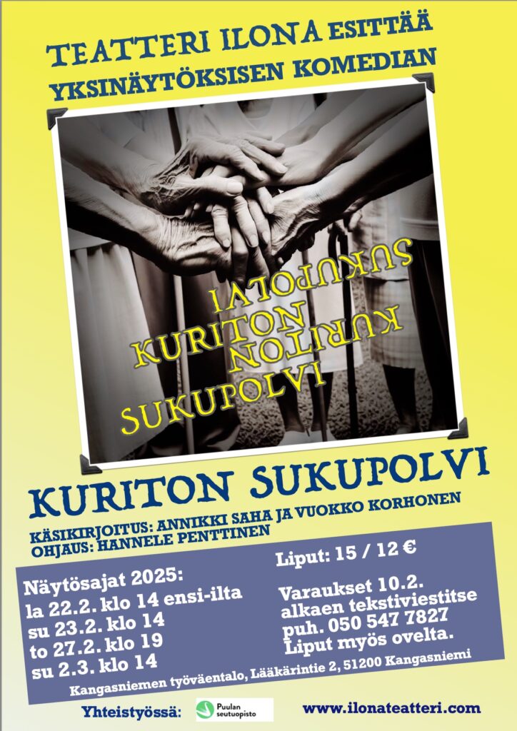 Teatteri Ilonan yksinäytöksinen komedia elämänsä ehtoopuolella olevista, jotka päättävät tehdä mitä haluavat.