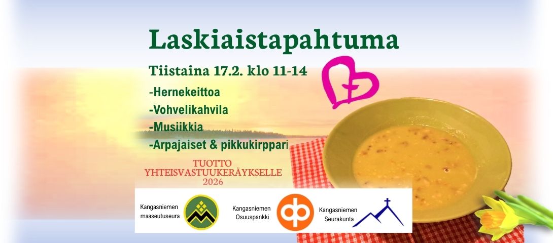 Tapahtumassa mukana Kangasniemen maaseutuseura, Kangasniemen seurakunta, Kangasniemen Osuuspankki ja K-Market Puulantori.