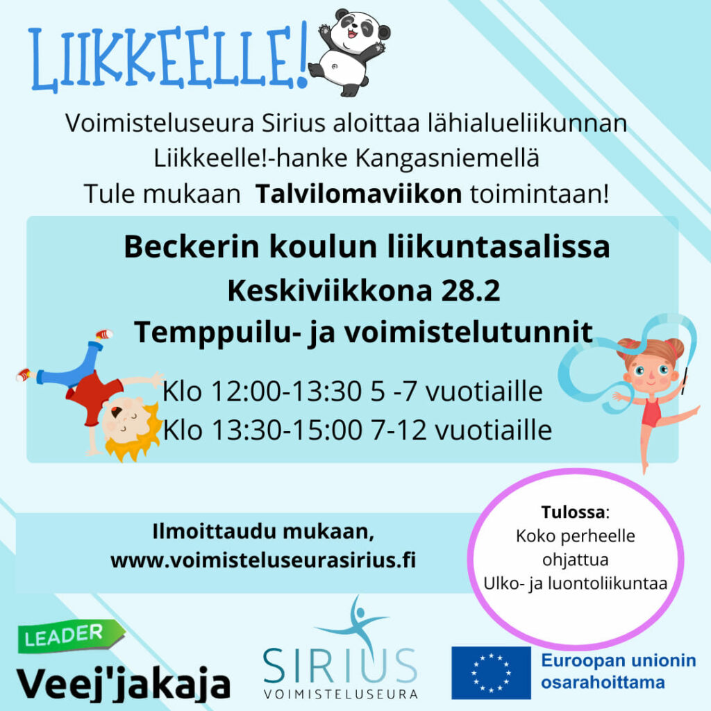 Voimisteluseura Sirius toteuttaa vuosina 2024-2025 lähialueliikunnan Liikkeelle!-hankkeen Anttolassa, Pieksämäellä, Puumalassa ja Kangasniemellä. Hanke sisältää erilaisia liikuntatapahtumia, leirejä, Touhuloita ja luontoliikunta-aktiviteettejä. Toiminta on suunnattu pääosin lapsille, nuorille ja perheille.