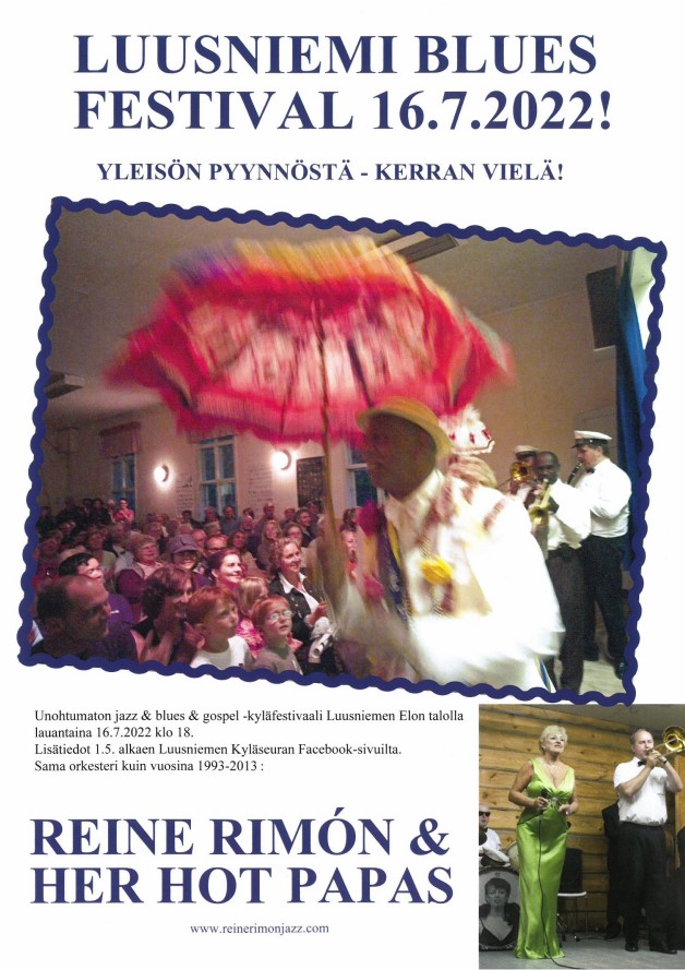 Reine Rimón & Her Hot Papas tuli Luusniemelle 20 peräkkäistä vuotta soittamaan: jazzia, bluesia ja gospeleita. Tänä vuonna toteutettavaa “vielä kerran” konserttia suunniteltiin ja pohdittiin useampi vuosi, onhan edellisistä blueseista jo yli viisi vuotta.