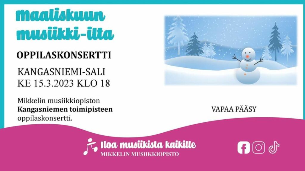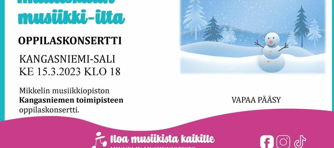 Mikkelin musiikkiopiston Kangasniemen toimipisteen oppilaskonsertti Kangasniemi-sali ke 15.3.2023 klo 18.00