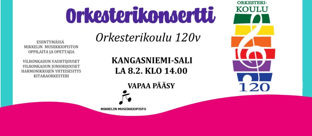 Esiintymässä Mikkelin musiikkiopiston oppilaita ja opettajia. Vilhonkadun Vauhtijouset, Vilhonkadun Juniorijouset, Harmonikat, Kitaraorkesteri, Kanteleet.