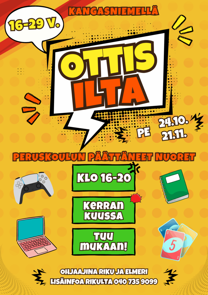Peruskoulun päättäneille nuorille kokoontumiset kerran kuussa Nuorisotila Ottiksella.