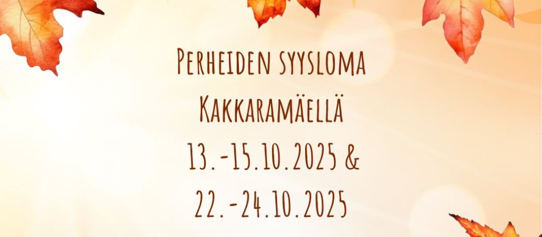 Kakkaramäen syysloma tarjoaa irtioton arjesta: kahden yön majoitus, täyshoito, lapsille ohjelmaa, jolloin sinä vanhempana saat hetken omaa aikaa sekä yhteistä ohjelmaa 🤍