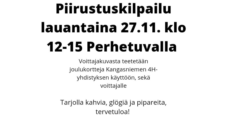 Kangasniemen 4H-yhdistys ry järjestää kaikille avoimen piirustuskilpailun lauantaina 27.11. klo 12-15 Perhetuvalla (Kankaistentie 5)