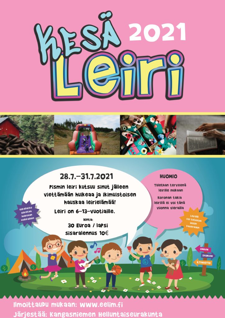 Leirille voi ilmoittautua osoitteessa: https://eelim.fi/index.php/lapset/leiri-ilmoittautuminen-2021/