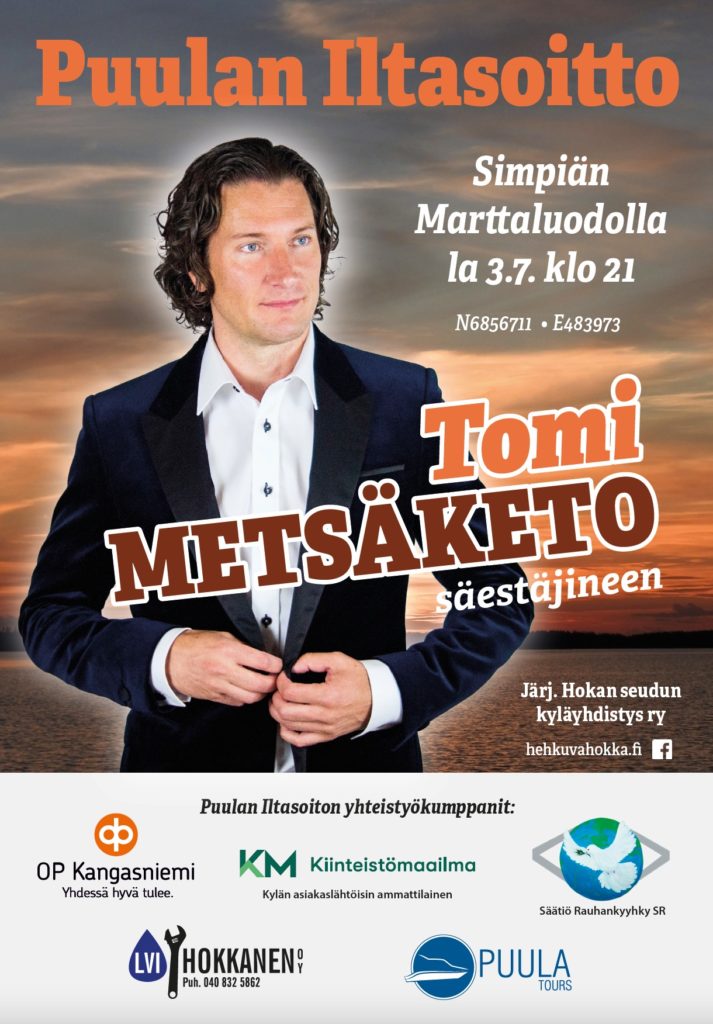 Tomi Metsäketo esiintyy säestäjien kera.