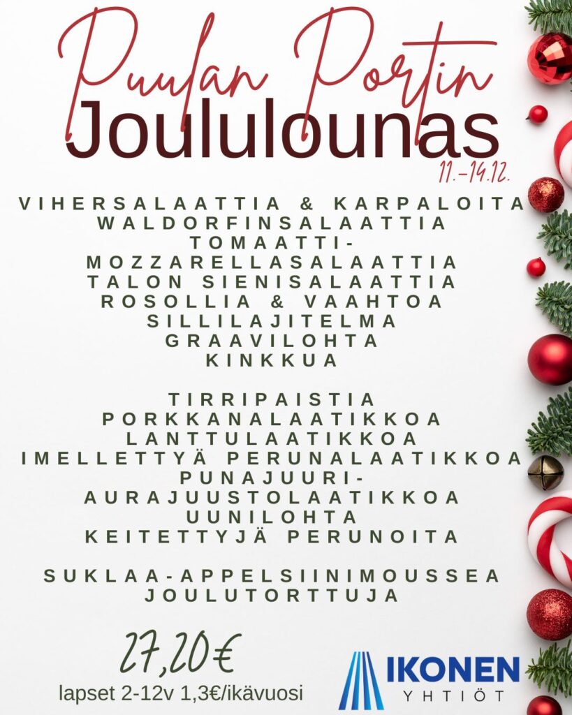 Puulan Portin runsas joululounas tarjolla torstaista – sunnuntaihin 11.-14.12.2025.