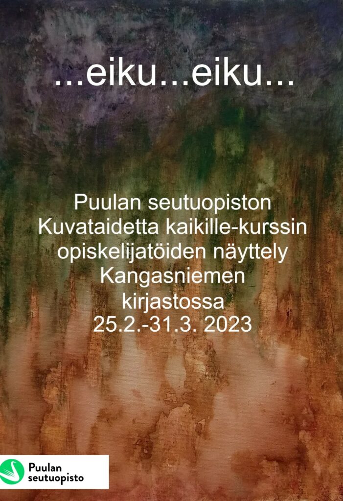 Puulan seutuopiston kuvataideryhmän näyttely Kangasniemen kirjastossa.