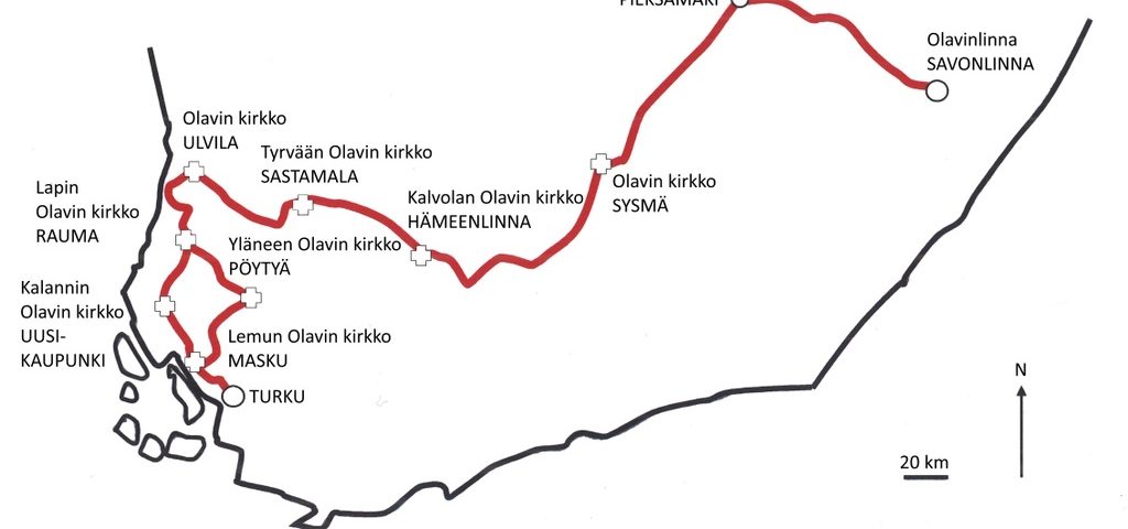 Viestipyhiinvaellus Savonlinnasta Turkuun Pyhän Olavin mannerreitillä kesällä 2022.