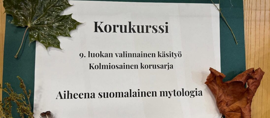 Kirjaston kotiseutuvitriinissä on 26.10. saakka esillä yläkoulun 9. luokkien käsityön valinnaisryhmän oppilaiden korunäyttely. Korujen teemana on suomalainen mytologia.