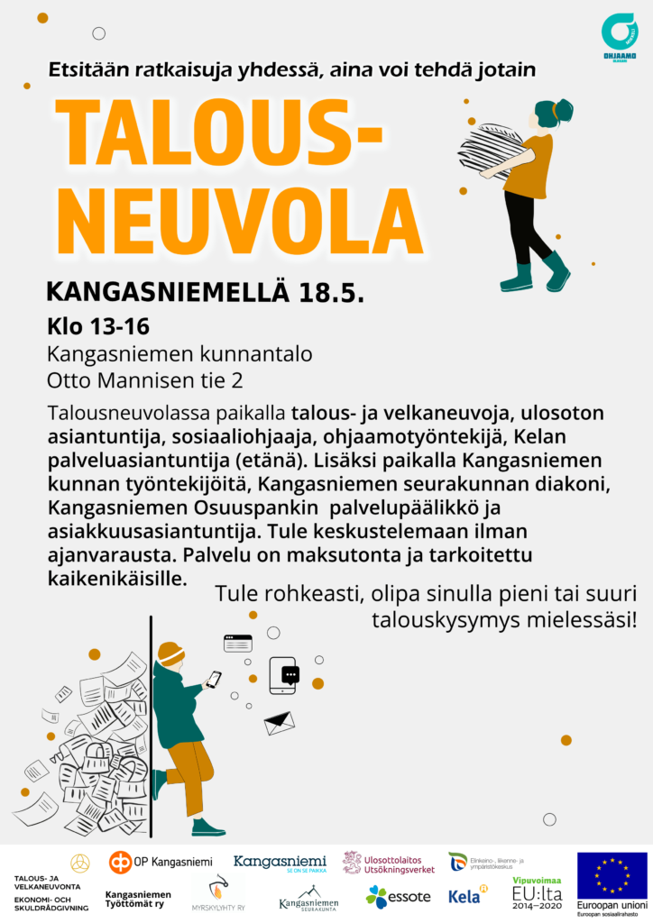 - Talousneuvolassa saat yleistä neuvontaa ja ohjausta talousasioihin monipuolisesti vauvasta vaariin. Talousneuvolassa on mahdollisuus myös henkilökohtaiseen ohjaukseen ja neuvontaan.